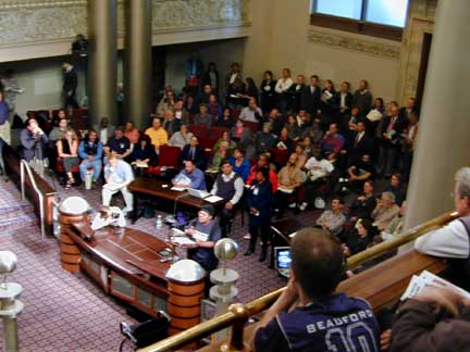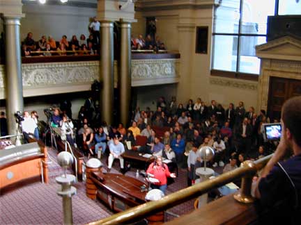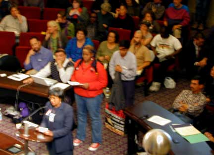 Vildred and Gwen listen to protestor's testimony