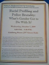 Rashidah participated in a Conference at Boalt Hall in Berkeley on October 7th at 4 PM that looked at Racial Profiling and Police Brutality -- What's Gender Got to Do With It? This panel discussion brought activists from across the Bay Area to look at the impact of police misconduct, bringing the experiences of women and LGBT people of color to the center of the analysis.